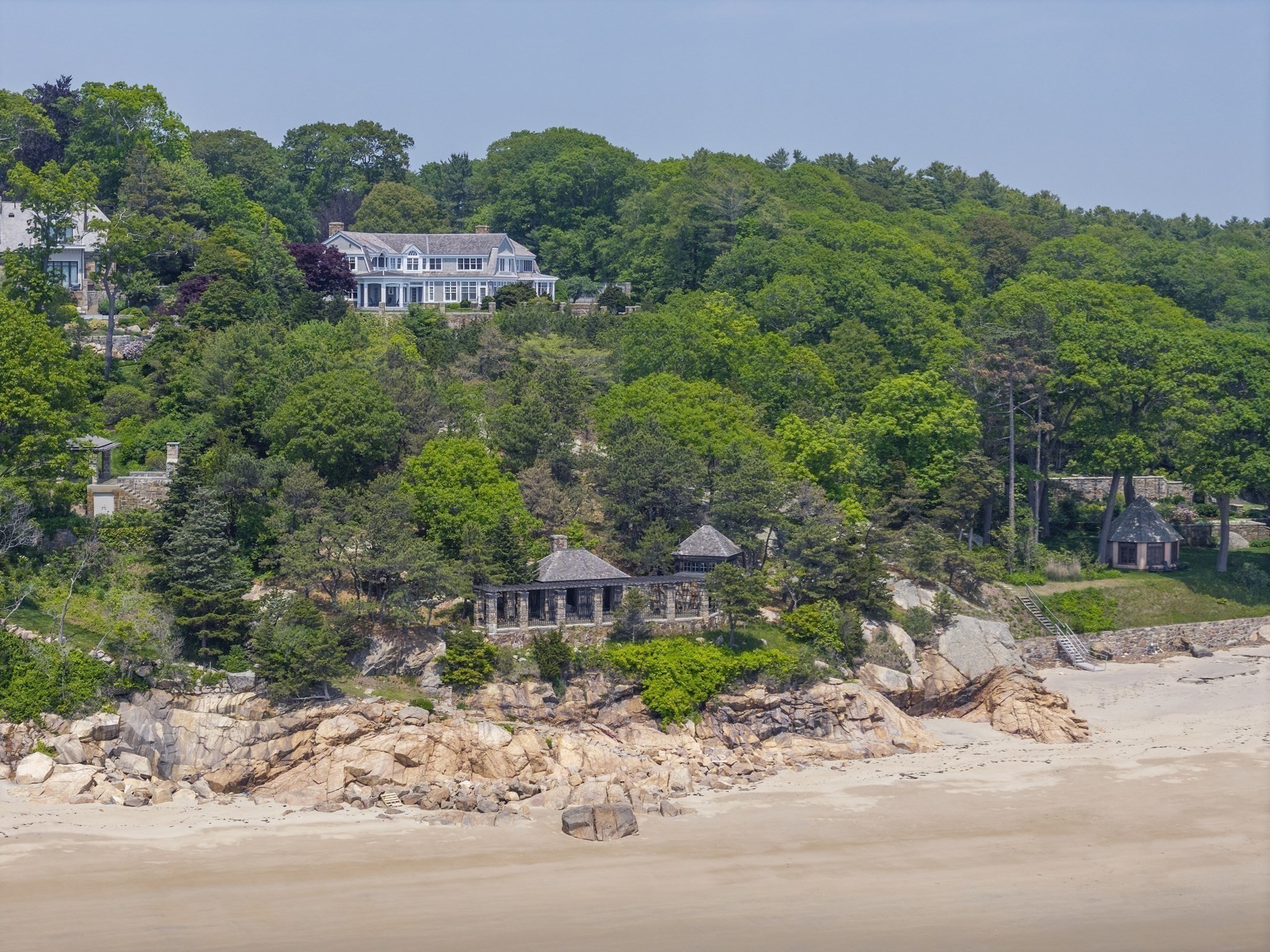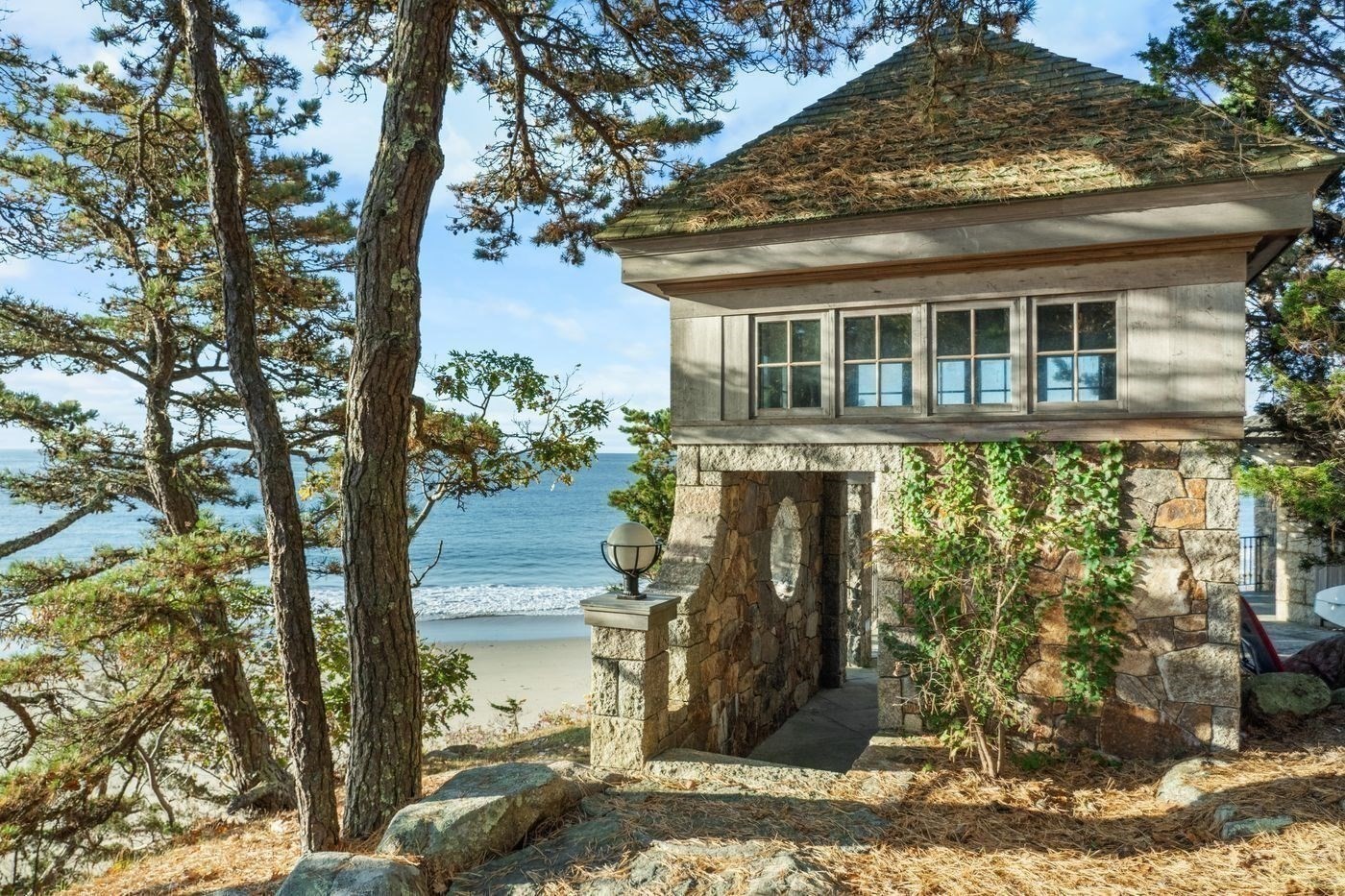 Welcome to a truly exceptional 7.4-acre oceanfront estate in Manchester-by-the-Sea, offering direct access to the soft sands of Graves Beach—your private shoreline retreat. This rare two lot property blends classic New England charm with resort-style living, featuring panoramic water views and extraordinary privacy along one of the North Shore’s most desirable coastlines. The home offers two primary suites—one on each floor—ideal for flexibility and comfort. The grounds showcase mature, curated landscaping cultivated over decades. Additional features include a stone bungalow overlooking the beach, a caretaker’s house on separate lot, detached garage, and an ocean-facing pool and jacuzzi. Enjoy unforgettable sunrises and elegant coastal entertaining—all just 45 minutes from downtown Boston.
