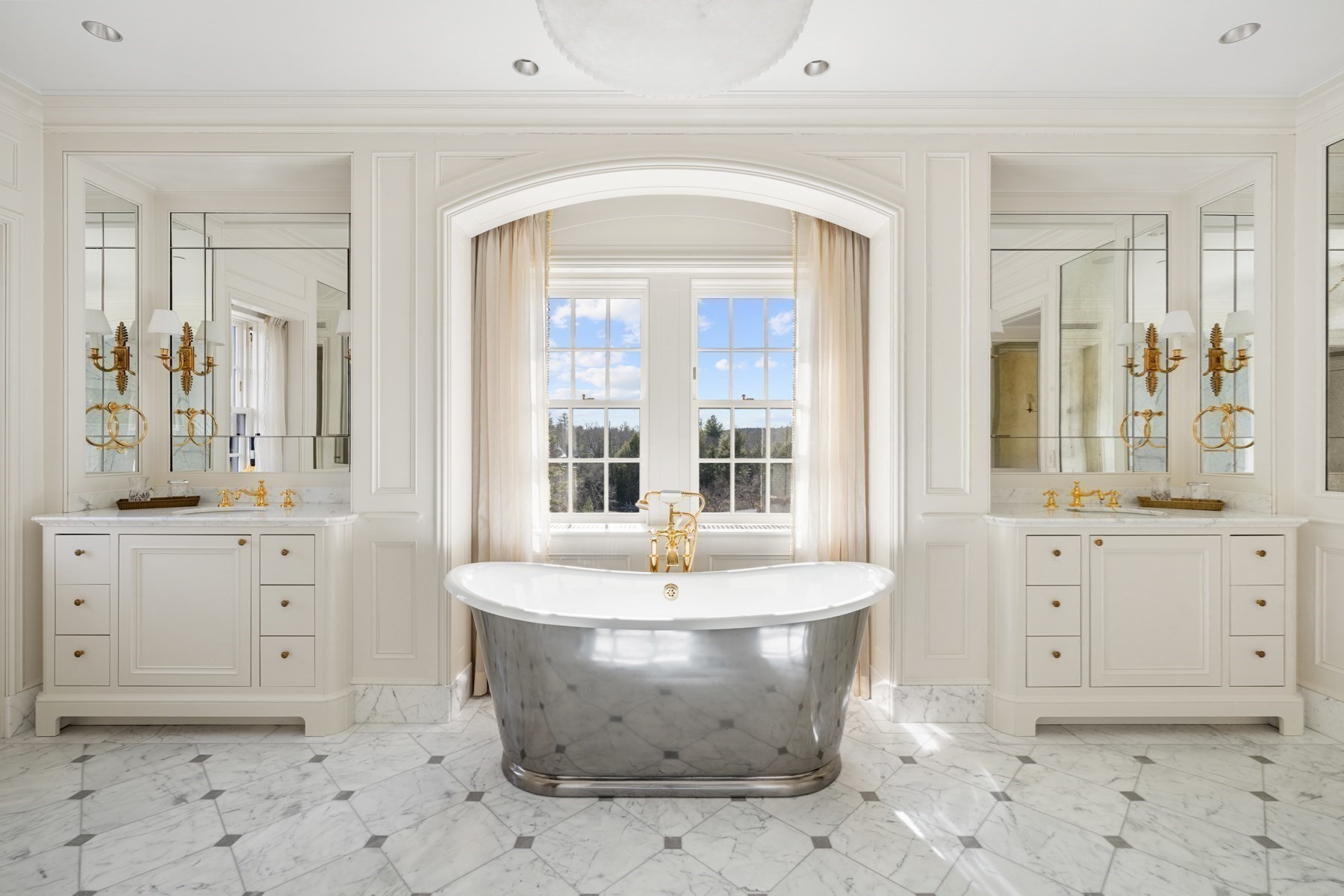 Step into a world of timeless elegance in this iconic English Revival Tudor. Prominently set high on a ridge abutting a tranquil pond and the lands surrounding the Weston Golf Club. The gated entry and winding approach reveal the commanding terraced property comprising over 6 secluded acres. The 1928 estate was originally designed by architect Eric Kibbon. A balance between modern comfort, beauty and continuity with the past was re-defined by visionary architect, Peter Pennoyer. The extensive restoration goes from the exterior red-clay masonry walls to meticulously re-building the interior living spaces. The curated finishes were precisely replicated from the new steel and Mahogany wood windows to the Ohio sandstone columns and millwork. The receiving court includes a carriage house, private entry to the guest residence and garage parking for 6 cars. Truly one of New England's unique suburban estates with easy access to Boston and Logan International Airport.