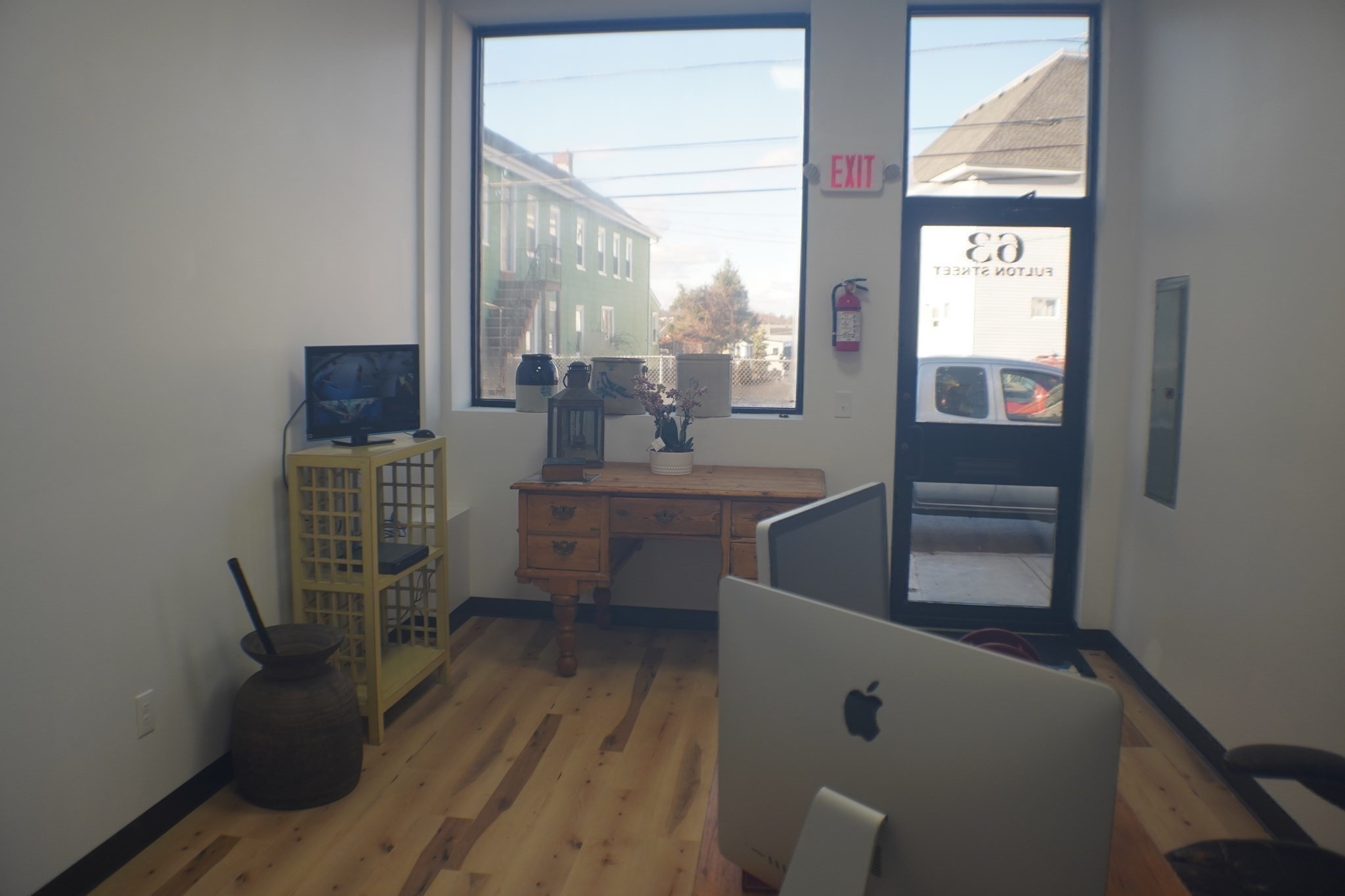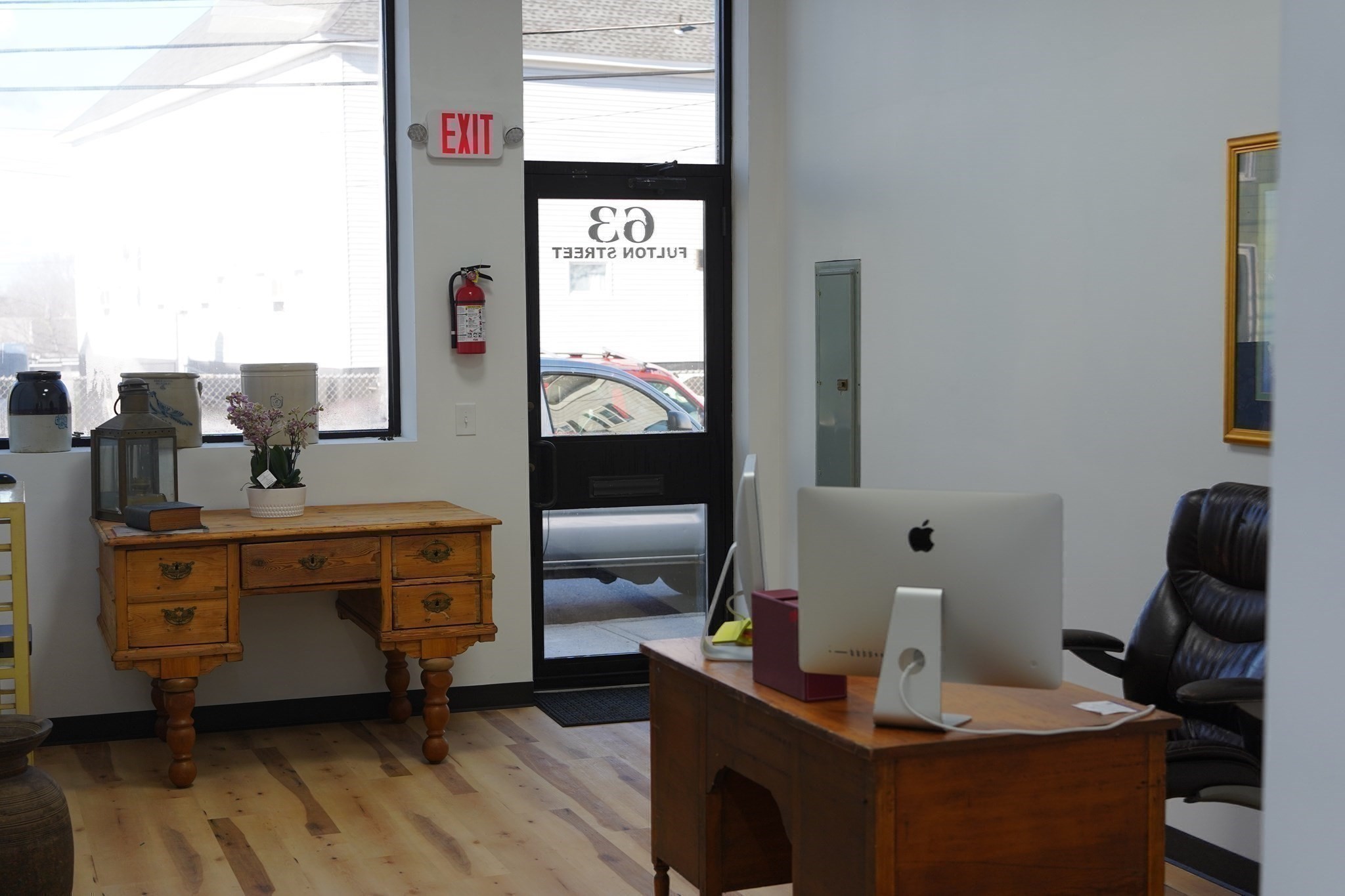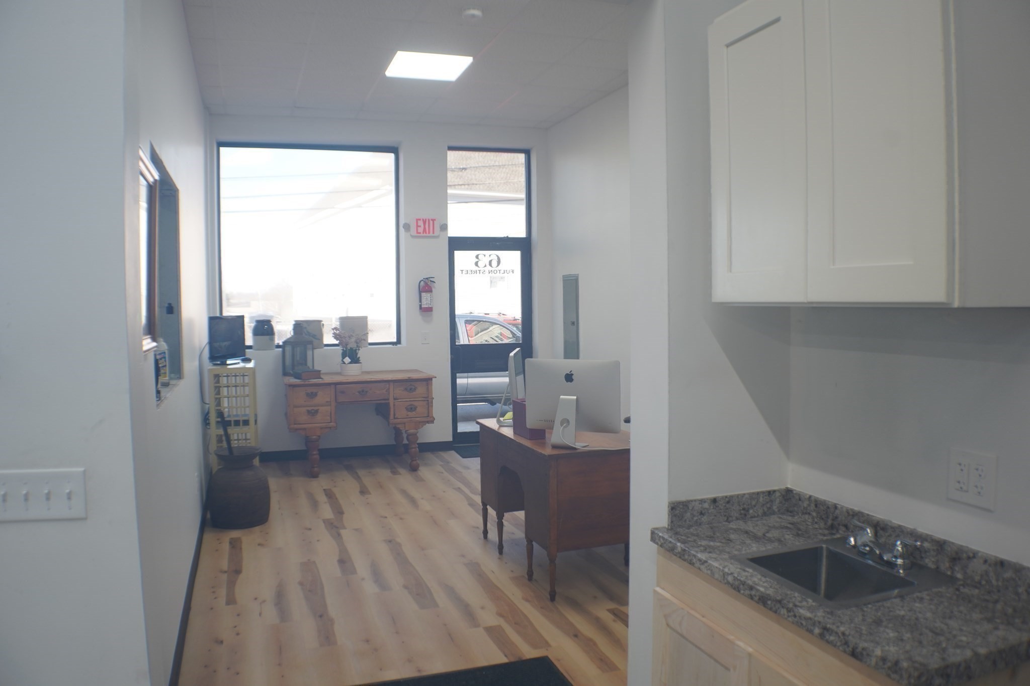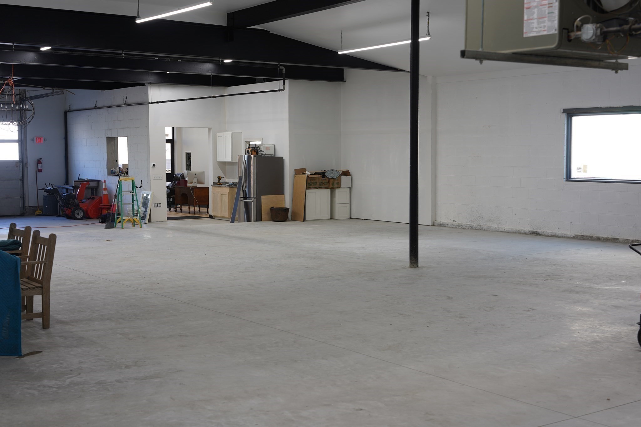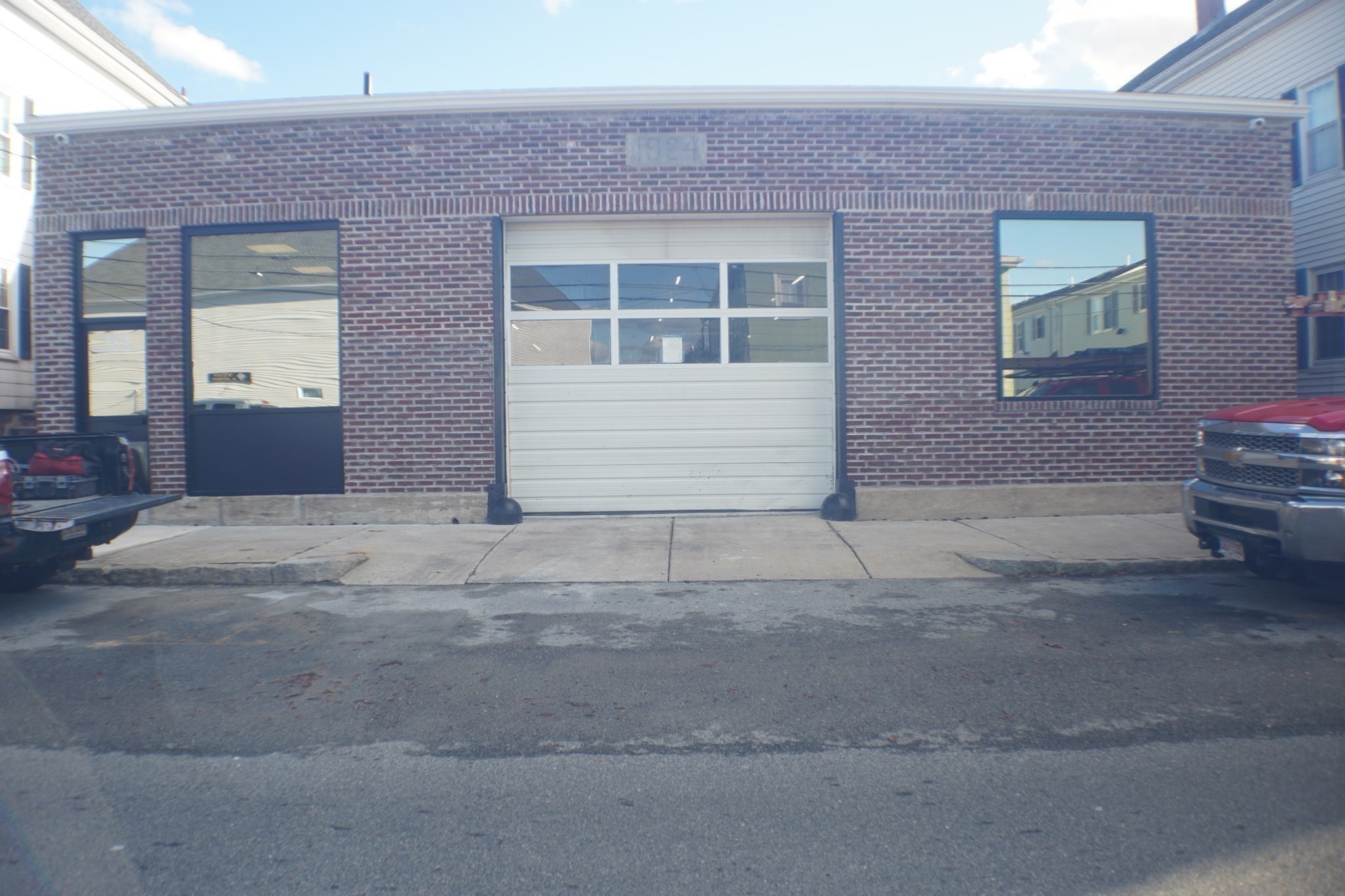 Centrally located & extensively renovated 4,232+/-sq ft warehouse space. This single-level building with brick façade features a 10'9" garage door and tall ceilings (11’-13’ height to structural beams and 18’+/- to ceiling). Inside, discover a 19'x11' office with waterproof vinyl plank flooring and large window, poured concrete floor with vehicle ramp, Modine heating system, updated electrical, video monitoring system, tiled half bath, industrial sink, storage cabinet, and refrigerator. Additional recent improvements: pitched asphalt shingled roof, new sewer line, water heater and large Andersen windows.